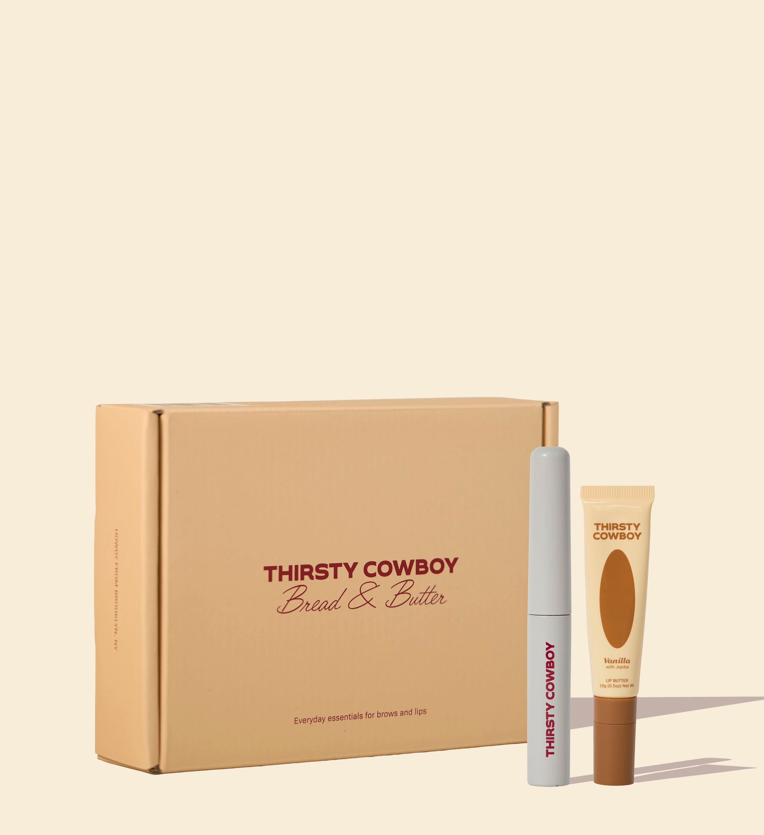 This holiday exclusive set features Brow Dough a nourishing eyebrow gel & Vanilla Lip Butter a thick occlusive lip balm.