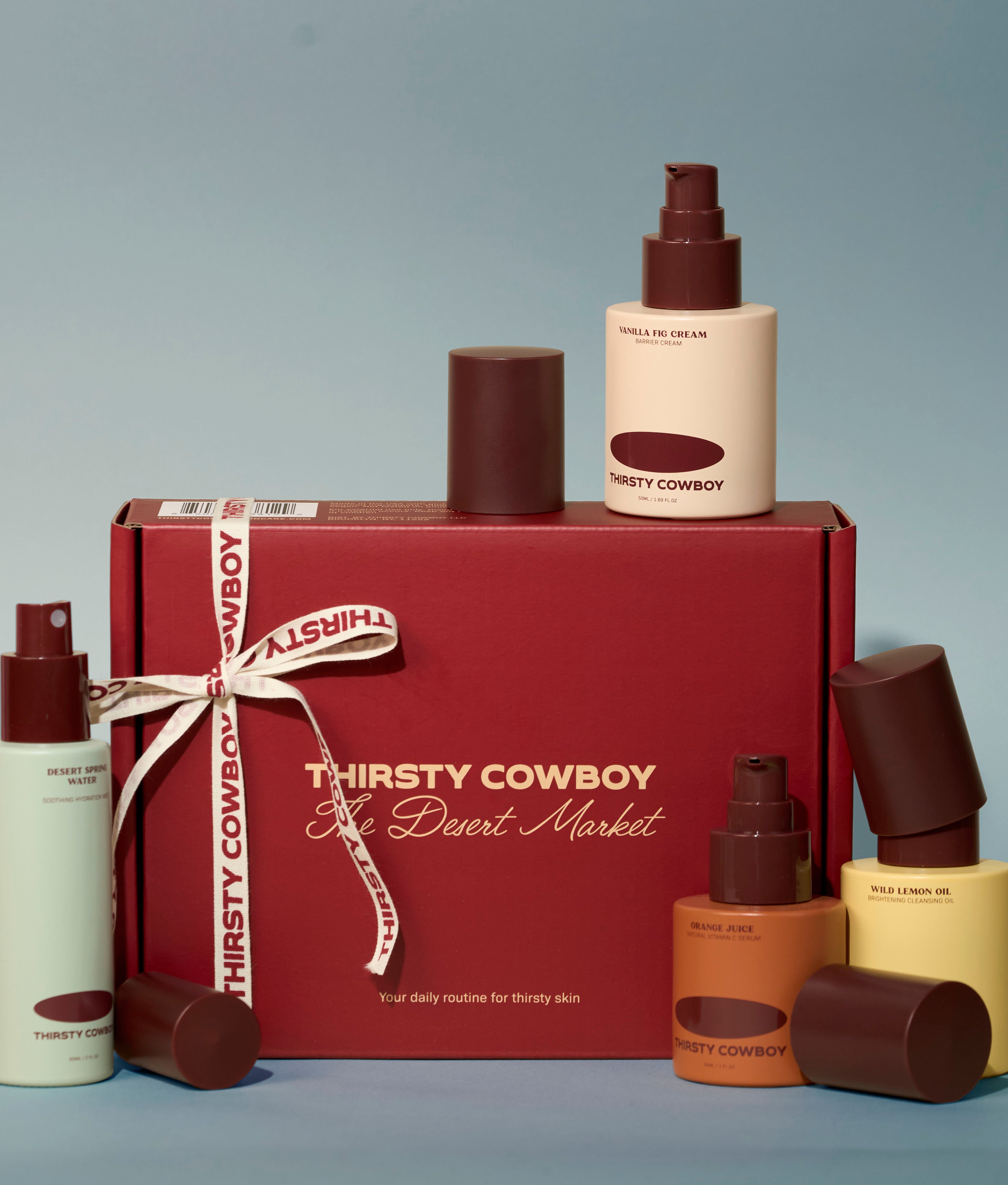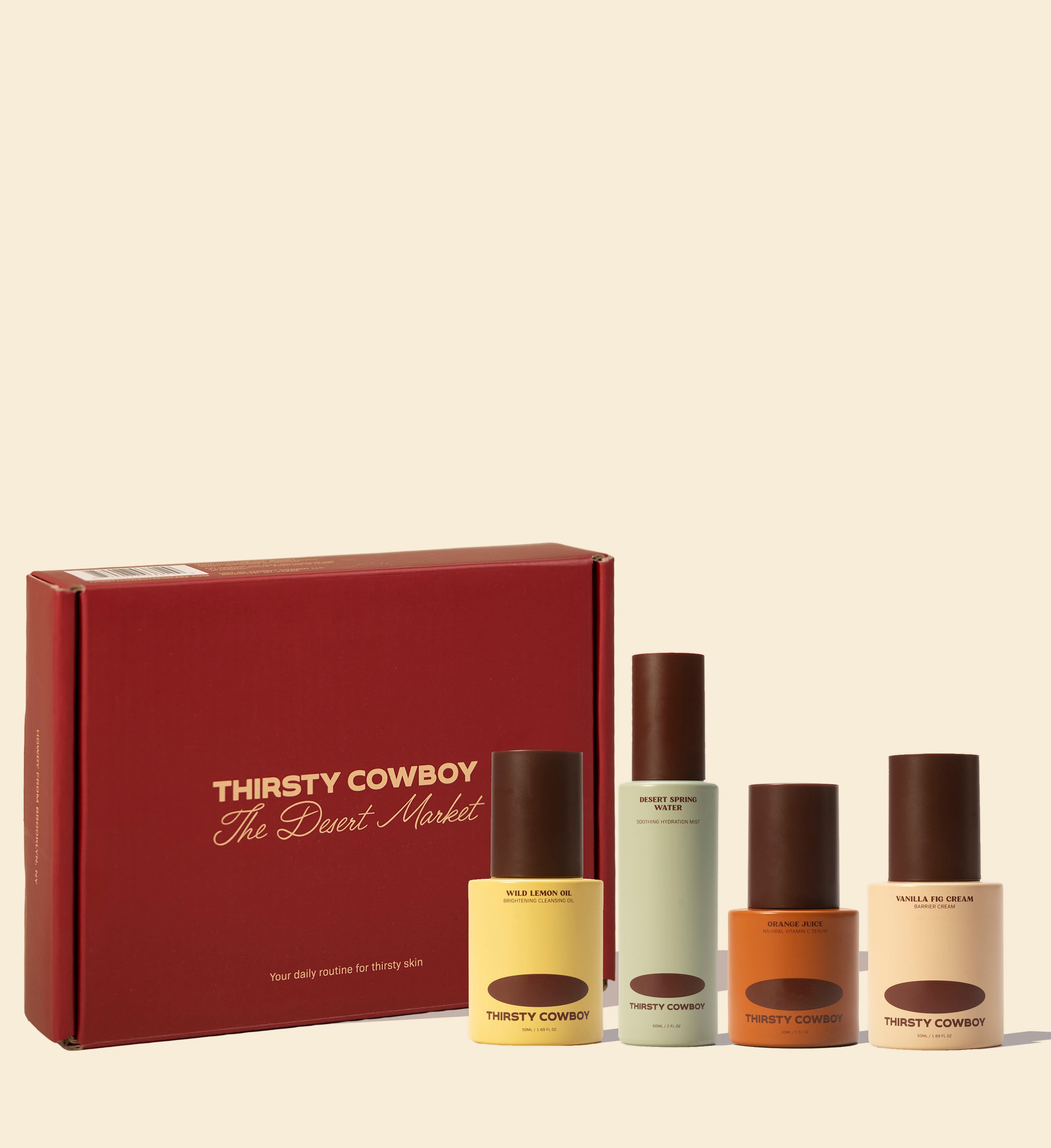 This holiday exclusive set features Wild Lemon Oil Cleansing Oil, Desert Spring Water Hydrating Spray, Orange Juice Vitamin C Serum and Vanilla Fig Cream Barrier Cream.