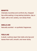Ricinus Communis (Castor) Seed Oil, Glycine Soja (Soybean) Oil, Ricinus Communis (Castor) Seed Wax, Carthamus Tinctorius (Safflower) Seed Oil, Simmondsia Chinensis (Jojoba) Seed Oil, Opuntia Ficus-Indica (Prickly Pear) Seed Oil, Balanites Aegyptiaca (Desert Date) Seed Oil, Natural Aroma (Flavor) Oil.